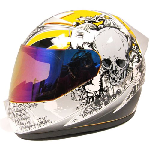 FEATURED 1Storm Motorcycle Street Bike Full Face Adult Helmet Booster Skull Yellow