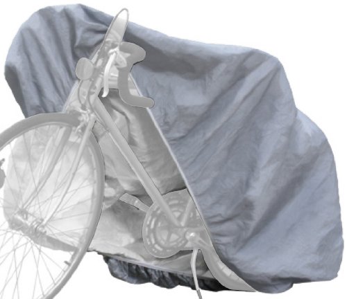 The Budge Gray Printed Child Bicycle Cover will fit an adult bicycle 54" long x 24" wide x 44" high. This cover is made from a DuPont Tyvek UV resistant material that will shield your bicycle from the hot sun. This cover is exceptionally UV resistant, lightweight and non-abrasive. The Gray Printed Bicycle Cover is perfect for hot, dry climate and will protect again sun, dirt, dust and other pollutants. This cover features a full elastic hem to ensure the cover fit snug. Cover is gray in color and includes a storage bag.