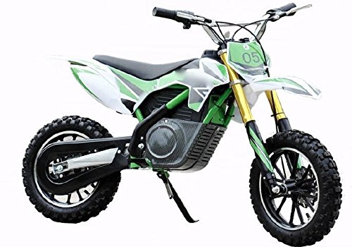 These electrically powered dirt bikes are very reliable and powerful, along with being made of durable and high quality parts. Customers frequently purchase these products from us if they want a decent and reliable electrically powered dirt bike that offers a lot of fun and longevity. Very popular. 500W. Three-speed-limit-lock function: Top speed 25km/h: Running time 40 minutes, Top Speed 15km/h: Running time 60 minutes, Top Speed 7.5km/h: Running time 120 minutes. 500W Rare Earth - Neodymium Magnet Motor. Max Torque: 2.1N.m. Battery: 24V12Ah lead acid. Chassis/Suspension/Brakes: Transmission: Chain. Frame & Swing Arm: Steel. Front shock: Inverted alloy front shock. Rear shock: Adjustable rear shock. Brakes: Front & Rear Disk. Dimension/Capacity: Front & Rear wheel: Front: 2.5-10 Rear: 2.5-10.