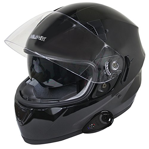 FEATURED Hawk ST-1150-204 Dual Visor Glossy Black Full Face Helmet with Kie Bluetooth Bu - X-Large w/ KIE Bluetooth
